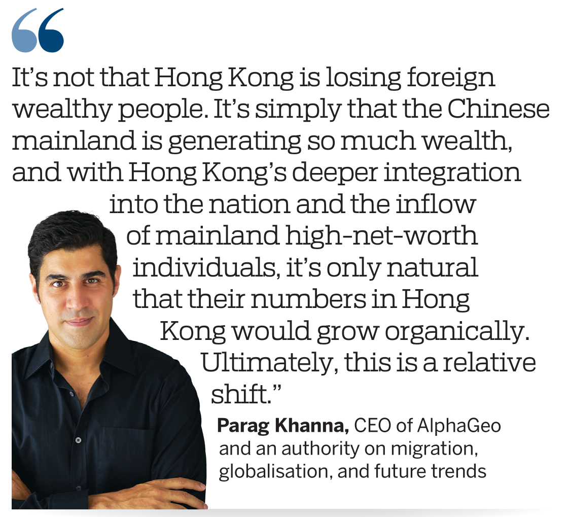 Khanna firmly rejects such an interpretation, calling the phenomenon a recalibration, not a contraction, of wealth. "It's not that Hong Kong is losing foreign wealthy people," he says. "It's simply that the mainland is generating so much wealth, and with Hong Kong's deeper integration into the nation and the inflow of mainland HNWIs, it's only natural that their numbers in Hong Kong would grow organically."