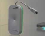 The Airnergy Charger, developed by RCA Corp, can convert ambient Wifi signals floating around in the air into energy, which it stores in its own lithium battery. It can then power up electronic devices via a mini-USB connector.