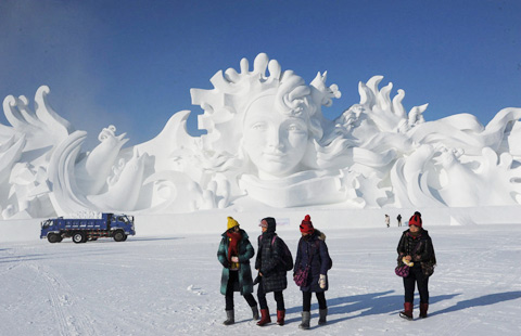 Snow sculptures and ice lanterns heat up Harbin