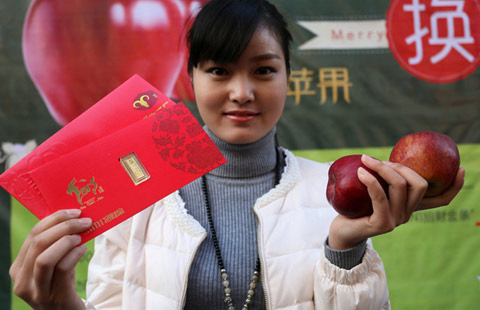 Liu Yuyang (left), 4, and Zhang Yanbo, 5, have fun in Wangfujing, Beijing, on Wednesday night. Many residents of the Chinese capital thronged downtown areas on Christmas Eve. WANG JING/CHINA DAILY |