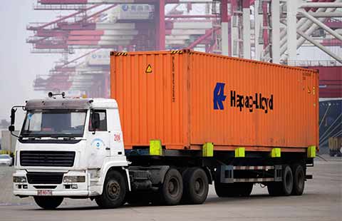 A stack of United Arab Shipping Company containers wait to be transported on July 8, 2011 at the the Georgia Ports Authority's Port of Savannah in Savannah, Georgia, the United States. [Photo/IC]