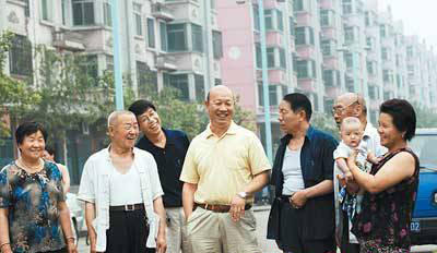 Yuan Guisheng, center, talks with residents in a community in this undated photo. [china.org.cn]