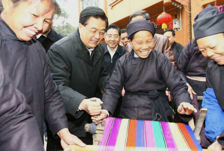 NANNING - President Hu Jintao spent the Spring Festival, a traditional family reunion holiday for the Chinese, in southern Guangxi Zhuang Autonomous Region, which was heavily hit by the worst winter storm in five decades.