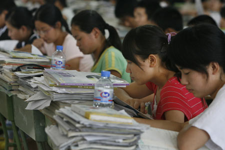 CHENGDU -- About 96,000 high-school students in China's quake zones are doing their final cramming for a special college entrance exam next week -- almost a month after the rest of the country, which was postponed by the disaster.