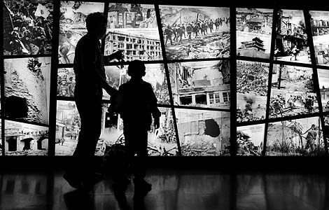 ![]() An exhibition depicting Japanese atrocities in China opened in the Museum of the War of Chinese People's Resistance Against Japanese Aggression in Beijing on Sunday. [Photo by Luo Xiaoguang / Xinhua]