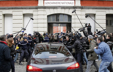A Tibetan monk (L) and performers attend a religious ceremony, known as "Da Gui" or beating ghost, to celebrate the upcoming Tibetan New Year which starts on February 22 at Yonghegong Lama Temple February 21, 2012. The ceremony is held annually during the Tibetan New Year as it is believed to expel evil spirits from the monastery. [Photo/Agencies] |