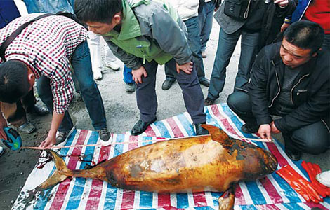 Sixty-six-year-old Huang Chonggao is at the scene as workers demolish his treehouse in Pudong, Shanghai, on April 13. Gao Erqiang / China Daily