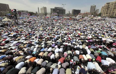 Guard of honor aboard the visiting Russian flagship Varyag is pictured during a welcome ceremony after the flagship arrives at a naval base in Qingdao, East China's Shandong province, April 21, 2012, for a 6-day joint exercise. [Photo/Xinhua] |