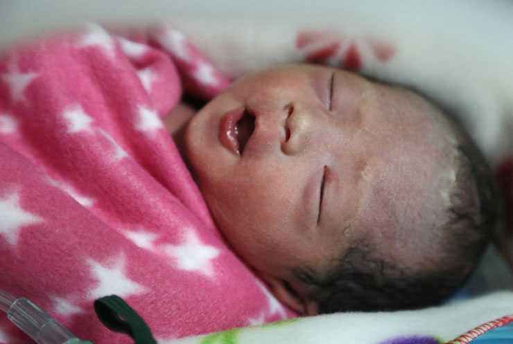 An infant is seen at a baby room of Minxian People's Hospital, Gansu province, on July 23, 2013.