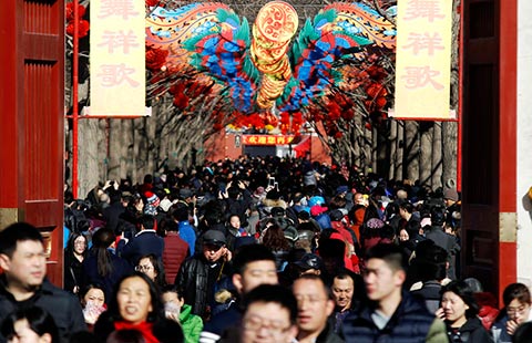 Actors stage a performance during a temple fair at the Temple of Marquis in Chengdu, capital of Southwest China's Sichuan province, Feb 8, 2016, first day of the Chinese Lunar New Year. [Photo/Xinhua]