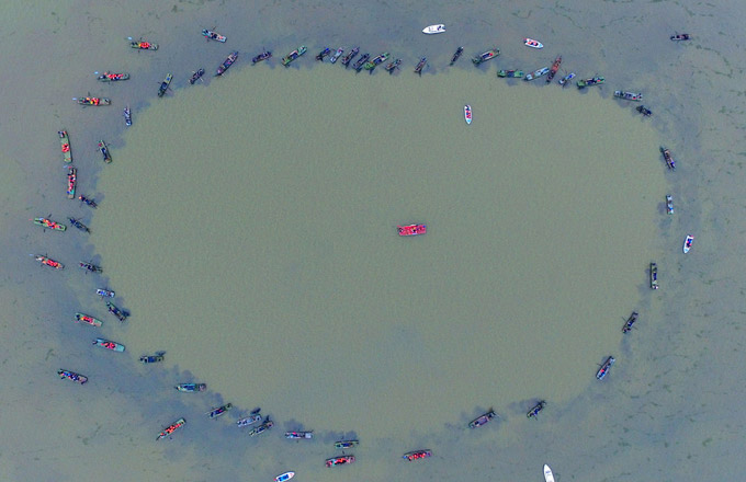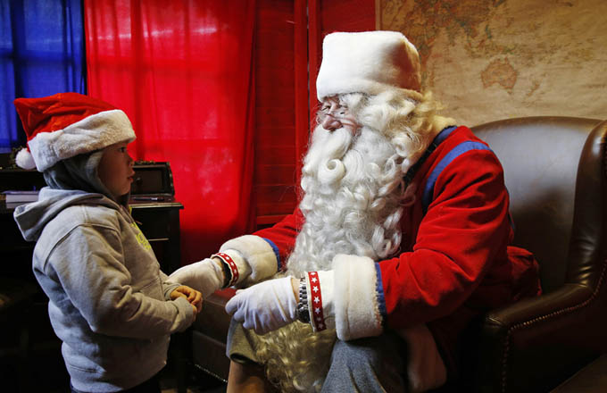A flash mob dressed as Santa Claus dance in a shopping mall in Beijing on the night of Dec 24, 2016. Although Christmas is not traditionally celebrated in China, shopping malls welcome the festival by organizing activities to attract shoppers and boost year-end sales. [Photo by Zhu Xingxin/Asianewsphoto]