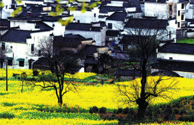 Tourists look at "tree paintings" at Wanfo Lake scenic spot in Shucheng County, East China's Anhui province, April 3, 2017. Artists here have painted animals like tiger, snake and panda in accordance with trees' features. [Photo/Xinhua]