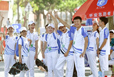 Yin Qixiang and his wife, Si Meixiu, pose for a wedding photo taken by students from Nanjing University of Aeronautics and Astronautics in Jiangsu province.[Photo prvided to China Daily] |