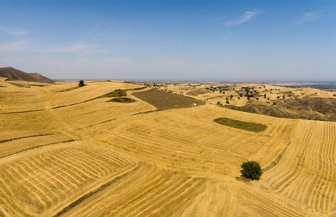 Photo taken on Sept 10, 2017 shows the harvest scenery of wheat fields in Janbulak scenic spot in Qitai county of Changji, Northwest China's Xinjiang Uygur autonomous region. The scenic spot attracted visitors with its golden autumn sceneries.[Photo/Xinhua]