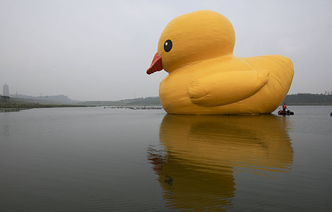 A giant rubber duck designed by Dutch artist Florentijn Hofman will be in Beijing from September to October.