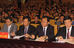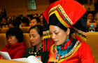 Deputies attend the closing ceremony of the 3rd session of the 11th people's congress of the Guangxi Zhuang autonomous region in Nanning, capital of the region, on January 31, 2010.