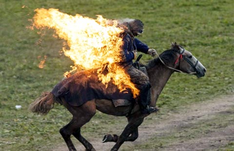 Jia Yijiang grinds a knife for a customer in Qiancun village, Shandong province, June 3, 2013. [Photo by Zhao Yuguo/Asianewsphoto] |