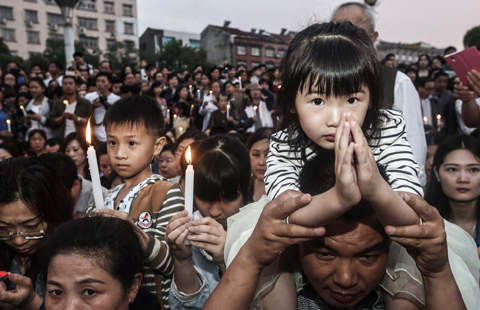 Song Guochao, successor of the national intangible cultural heritage of shadow play, manipulates a leather puppet during a performance in Dalian, Northeast China's Liaoning province, June 4, 2015. The Chinese shadow play is performed by manipulating flat leather puppets against a lit-up translucent screen. The art form was registered in the Representative List of the Intangible Cultural Heritage of Humanity by the UNESCO in 2011. [Photo by Zhang Chunlei/Xinhua] |