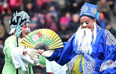 A Nepalese policeman rests in front of Changu Narayan, a temple dedicated to Lord Vishnu, in Changu village, 20 kilometers east of Kathmandu, Nepal. [Photo/Agencies] |