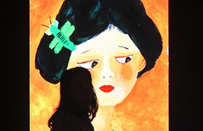 And in yet another, identical image of his own face blow out of his mouth like expanding bubbles.