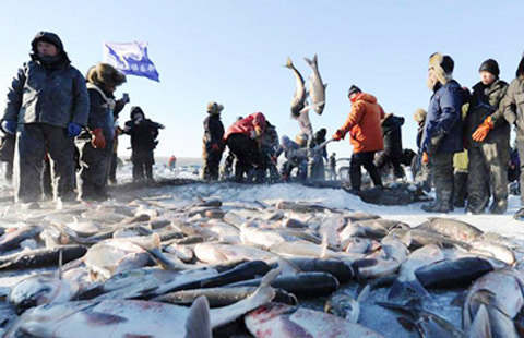Straw sculptures are seen in Northeast China's Liaoning province during the First Straw Art Festival of Panjin City on Dec 26, 2015. [Photo/weibo.com] |