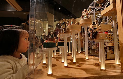 Craftsman and Artist Wu Pei introduces a ship model to kids at his working studio in Hefei, capital of East China's Anhui province, March 16, 2016. The ship models Wu made is specialized in wooden structures and delicate sculptures. His works have been collected by domestic and foreign art galleries. [Photo/Xinhua] |