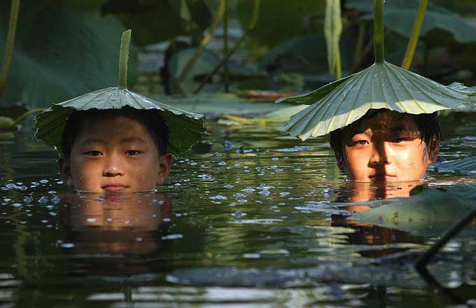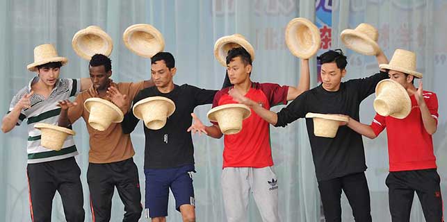 Students from China's Tibet autonomous region of Liaoyang No 1 Middle School take photos at a tour exhibition held in the Cultural Palace of Nationalities in Beijing, capital of China, July 13, 2017. The exhibition showcased a total of 365 pieces of artworks created by Tibetan students of Liaoyang No 1 Middle School. [Photo/Xinhua] |