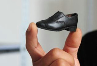 Shoemaker makes miniature leather shoes in Jinan