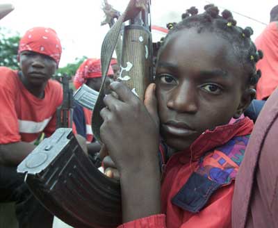 Young Liberian government soldiers in Monrovia prepare to head to the front line in this picture taken, June 14, 2003. Liberia's warring factions said they were ready to sign a ceasefire on Tuesday, but new flashes of fighting raised questions over whether they were determined to end West Africa's bloodiest war. [Reuters]