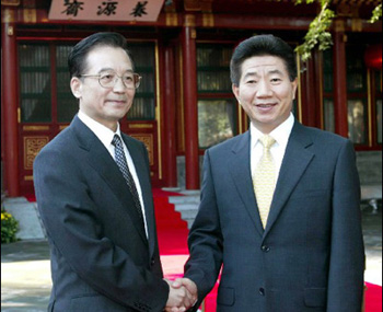 Wu said the agreement to build a comprehensive co-operative partnership, which was reached by President Hu Jintao and Roh on Monday, accurately reflects the current state of bilateral ties and the orientation of future development. China and the ROK have maintained good co-operation in bilateral and multilateral areas, witnessing remarkable amounts of trade and investment as well as wide-ranging co-operation, Wu said. Wu, chairman of the Standing Committee of the 10th National People's Congress (NPC), China's top legislature, said the NPC is ready to strengthen exchanges and co-operation with ROK National Assembly. He said the two sides can learn from each other in the field of legislation. Premier Wen Jiabao said the two countries have great potential in economic co-operation given the complementary nature of the two economies. Wen pledged to deepen and expand reciprocal and complementary economic ties with the ROK to promote mutual prosperity. Wen made suggestions on bilateral co-operation in such areas as high technology, resources exploitation and environmental protection industries. He also encouraged ROK enterprises to take an active part in the country's development of its vast western areas, dubbed the "Go West'' campaign. Roh said his country is ready to further develop bilateral ties with China and work for the development and prosperity in the Northeast Asian region. Vice-President Zeng Qinghong said bilateral relations have developed in a comprehensive manner since the two countries established diplomatic ties in 1992. That has served the practical interests of the people of both countries and contributed to regional peace and stability, Zeng said. Turning to the nuclear issue of the Democratic People's Republic of Korea (DPRK), Zeng said China welcomes an improvement in relations on the Peninsula and appreciates the peace and prosperity policy advocated by Roh. In anther development, Foreign Ministry spokesman Kong Quan said yesterday that the formulas of dialogue can vary as long as the "Beijing Talks'' process continue. Kong said the DPRK nuclear issue should be resolved through peaceful dialogue while the security concerns of the DPRK should also be met. He said China will continue to push for such a dialogue as it has always been doing.