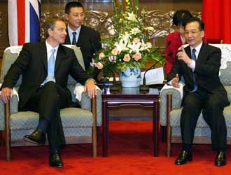 2003. Earlier, Blair held talks with Chinese Premier Wen