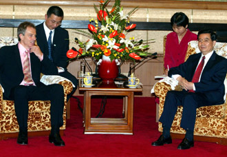 visiting British Prime Minister Tony Blair in Beijing on Monday July 21,