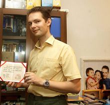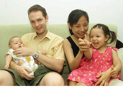 "Helping others makes me happy," he said. In September 2001 he came to Shanghai, working as business development manager for the Commonwealth Bank of Australia's joint venture insurance company with China Life. Boonham has continued his charity involvement. He collected hundreds of old toys from his neighbours and donated them to a local orphanage in the name of the community. "That's probably the most meaningful thing I've ever done during the past two years," he said. "I enjoy seeing the cheery faces of kids when they are playing with the toys." Traditional family Since his first visit to China in 1993, Boonham returned every year before he took his job with the Australian bank. He said he has made lots of Chinese friends and found his true love. Boonham now enjoys a happy life in Shanghai with Chinese wife Yue Xuemei, their two children and her parents. "Boonham is a straight person, honest and warm-hearted," said Yue, who comes from Beijing. "We first met each other in a dumpling restaurant near Beijing's Ditan Park with a group of friends," she recalled. "It was September 25, 1997. We later fell in love." Two years later, Yue flew to Sydney to marry Boonham. "I think I made the right choice. He is a responsible and dependable husband," she said. "Boonham is a well-raised boy," said Gao Shuqin, Boonham's mother-in-law, who helps take care of her two grandchildren. However, she used to strongly oppose her daughter's relationship with Boonham. "We are a very traditional Chinese family and we had never imagined our daughter would marry a foreigner," said Gao. "But his sincerity has finally moved us. His Chinese is really good." Even if the couple quarrel, they make up the next day, according to Gao. Boonham, who at first also worried whether he could get along with his in-laws, now enjoys his harmonious family life. "I am very satisfied but sometimes a little bit uneasy," said Boonham, since his parents-in-law did most of the housework and cooked Chinese dishes everyday. "I like Chinese food so much that my wife call me 'a big trash can' because I always eat up everything they cook," Boonham said with a laugh. "All of our worries have gone and we are now living just like a traditional Chinese family."