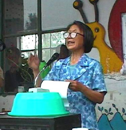 Though the microphone was not working as it should, Li succeeded in catching the listeners' attention with her confident and impressive style.