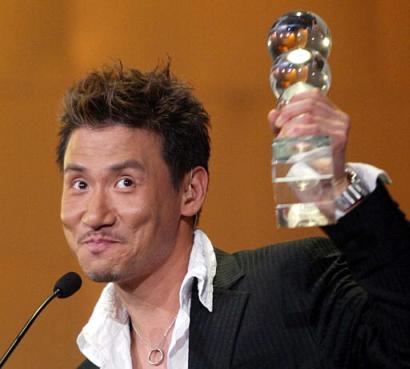 Jacky Cheung holds his award for Pan-Asia Best Artist of the Year at the