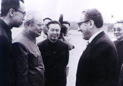 On July 9, 1971, Henry Kissinger, the then National Security Adviser to the US president, arrived in Beijing on his secret but historic visit to China. Senior Chinese leader Yan Jianying (second on the left) met Dr Kissinger at Nanyuan Airport, with Huang Hua (third on the left) and other Chinese Foreign Ministry officials.