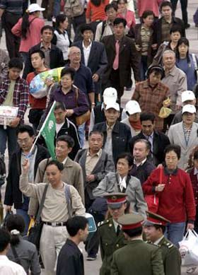 Civil air administrations have approved 2,700 extra flights during the holiday period, 14 per cent more than last year's increase. The Ministry of Railways has also added more trains to cope with the crush of people buying train tickets during the "golden week." The ministry predicts that a total of 35.5 million passengers will take trains between last Sunday (September 28) and October 7. The peak traffic flow will be seen on October 1, with 3.85 million passengers expected hit the tracks. Today is expected to be the peak day for passengers taking middle and long distance journeys, with an estimated flow of 1.05 million passengers, 25,000 more than last year flow on this day. Beijing, one of the hottest destinations for tourists, has been preparing for tourists from all parts of the country. According to the Beijing Holiday Tourism Management Team, Beijing Capital International Airport is prepared to handle over 700 flights every day. The local railway bureau put an additional 33 temporary trains into operation yesterday evening for the duration of the holidays, and the Beijing Public Transportation Company plans to dispatch 10,300 buses every day. It is expected that the local bus system will carry 87 million passengers from today to October 7, and over 13.5 million people will use the subway system during the same period. As for boundary control points between the Chinese mainland and Hong Kong, measures have been drawn up to enhance the flow of visitors, increase the capacity of transportation facilities, and step up information dissemination to visitors, Hong Kong's Secretary for Security Ambrose Lee said yesterday. To facilitate customs clearance, "expeditious immigration clearance'' procedures and new optical-character-recognition readers have been introduced at busier control points to increase handling capacity. To inform tourists about important travel information, the Ministry of Public Security said it would release daily information in popular tourism areas from today to Oct 8 through major Chinese media. The daily information will mainly include traffic and accident reports in 28 major scenic spots, major traffic accidents in 31 tourism cities, and other necessary information.