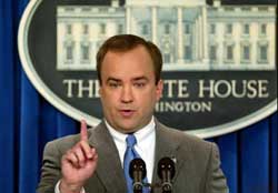 "A crime was committed here, a very serious crime," said Sen. Charles Schumer, D-N.Y. After Novak's column was published, the CIA's Office of General Counsel sent a letter in late July to the Justice Department, saying that a violation of the law had apparently occurred when someone provided Novak with the CIA officer's name. The letter was not signed by CIA Director George Tenet and did not call for a specific investigation of the White House. McClellan said White House officials were not trying to determine on their own what had happened or who was involved. "Are we supposed to chase down every anonymous report in the newspaper? We'd spend all our time doing that." Asked about the appointment of a special counsel, he said, "There are a lot of career professionals at the Department of Justice that address matters like that. ... It wouldn't be our place to get involved in that." The rules for appointment of a special counsel give Ashcroft wide latitude to either appoint one outright, conduct a preliminary investigation to determine if such a counsel is needed or to conclude that it would be better for the Justice Department to handle the probe itself. Among the rivals for Bush's job: _Former Vermont Gov. Howard Dean said Ashcroft should recuse himself from an investigation, which Dean said should be handled by an "independent Justice Department inspector general." _Rep. Dick Gephardt, D-Mo., called for a congressional investigation. "I don't think we can leave this to the administration's own Justice Department," he said. _Sen. Joe Lieberman, D-Conn., said an independent, non-partisan counsel should investigate. "It would be scandalous if such acts were a reaction to the public's conclusion that the president has used 16 misleading words in his State of the Union address last January." _Sen. John Kerry, D-Mass., also called for a special counsel. "Too many questions exist to risk allowing any potential for political intervention," he said. _Sen. John Edwards, D-N.C., joined in calling for a special counsel. "On too many fronts, from Iraq to environmental policy, this administration has had a problem telling the truth when it conflicts with its political agenda," he said. "I do not trust John Ashcroft to get to the bottom of this on his own."