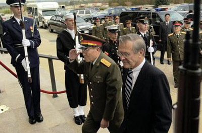 Cao conveyed to Bush regards from President Hu Jintao, CMC Chairman Jiang Zemin and Premier Wen Jiabao, while Bush extended to Cao a very warm welcome and asked him to relay his best wishes to the trio. Bush said it was a US priority to strive to bolster relations between the two countries and their military forces. He pointed out that his recent meeting with Hu in Bangkok had yielded positive results and had far-reaching implications. Strengthened co-operation between the two countries in bilateral and international affairs will propel ties forward, he said. Bush recalled his meeting with Jiang in October last year and stressed its significance. He was anxiously looking forward to Wen's imminent visit to the US. Better ties and enhanced co-operation between the two countries is not only mutually beneficial but helps the whole world. The US Government will continue its efforts to cement the bilateral bond, Bush said, adding that he would personally strive to achieve this. Cao said that the improvement and development of Sino-US relations not only tallies with the fundamental interests of the two peoples, but is conducive to the maintenance of peace, stability and development of the Asia-Pacific region and the world at large. The meeting between the leaders of the two countries and their reciprocal visits have greatly bolstered the constructive collaboration of the two countries. Thanks to the concern and support of the State leaders and their joint efforts, exchanges between the two military forces have been making continuous progress, he observed. Cao said his Wednesday meeting with Donald Rumsfeld, the US defence secretary, was positive, constructive and fruitful. He believed that the wide-ranging and vital common interests between the two countries and their joint efforts will lead to more development in their military ties. Bush said he was pleased with the results of Cao's visit and would continue to care for and support bilateral military relations.