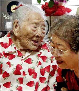 Born in 1887, Hongo was recognized as the world's oldest by the Guinness Book of Records after an American woman — Maude Farris-Luse — died in March at the age of 115. Hongo's doctor, Kiyoshige Niina, said she died of pneumonia. Charlotte Benkner of North Lima, Ohio, is the nation's oldest person, according to the Gerontology Research Group. The German-born woman will turn 114 on Nov. 16. Hongo was famous throughout Japan for her habit of sleeping for two days and then staying awake for two days. She had been hospitalized in Kagoshima, on the southern island of Kyushu on Oct. 8, after complaining of loss of appetite and fever. She appeared to have been recovering when her condition worsened Friday, Niina told a news conference. Raised on a small, rural island on Japan's southern fringe, Hongo grew up tending cows and farming potatoes. The same island also produced the Japanese record-holder for longevity, a man, Shigechiyo Izumi, who died in 1986 at the age of 120. Hongo symbolized the graying of Japan's society — a trend that elicits both pride and concern. Until last month, the world's oldest documented man was also Japanese — 114-year-old Yukichi Chuganji. He died Sept. 29. Japan's life expectancy — 85.23 years for women and 78.32 for men in 2002 — is the longest in the world. The average age of the population is also steadily rising. Experts say the traditional Japanese diet — which is low in fatty foods — helps explain that longevity. An annual government survey released this year in conjunction with Respect for the Aged Day, a national holiday, showed a record 24.3 million Japanese — almost one in five — have reached their 65th birthday. At the same time, Japan marked a record low 1.32 births per woman last year, a figure that been falling for the last three decades and reflects changing values that have led more women to choose careers over children. The changing demographic has raised fears the nation's pension and health care systems will be badly strained in the years ahead by a population consisting of fewer people of working and taxpaying age. It was not immediately clear who the world's oldest person was following Hongo's death. Japan's Health, Labor and Welfare Ministry said Mitoyo Kawate of Hiroshima — 114 years old — became the oldest person in this country.