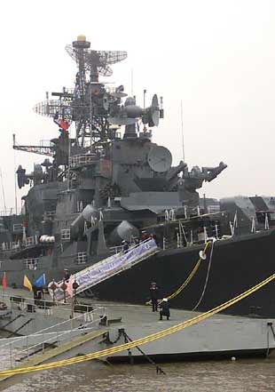 naval destroyer INS Ranjit, in Shanghai, November 11, 2003. Three
