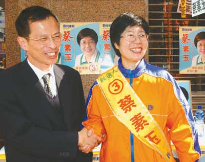 Ip Kwok-him (L), deputy chairman of the Democratic Alliance for the Betterment of Hong Kong, reacts beside his competitor Cyd Ho after Ip lost in a district election in Hong Kong early November 24, 2003. A record 44 percent, or more than one million voters, cast their ballots on Sunday's poll. [Reuters]