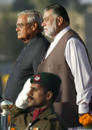 anthems, in Islamabad, January 3, 2004. [Vajpayee, who is visiting