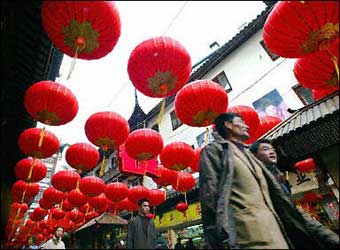 People walk under rows of Chinese traditional red lanterns at Shanghai's Yu Garden. Flower sales in Shanghai have soared as demands growed dramatically during the Chinese Lunar New Year holiday. [AFP]