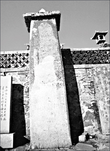The peak Ma'anling (Saddle Mountain), located in the Shishan Geopark in Haikou of South China's Hainan Province, wins its name thanks to its twin volcanoes. The Ma'anling volcanoes are the biggest among all volcano clusters that were active between 27,000 to 1 million years ago. The altitudes of its north peak and south peak are 222.2 metres and 186.75 metres respectively, both of which are surrounded by more than 30 smaller sized hills. | |  No Word Tablet in front of Yuhuang Temple (or Jade Emperor Temple) in Taishan Mountain, earns its name from the absence of characters or paintings on the stone. | |