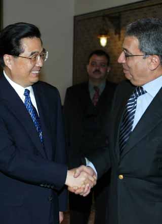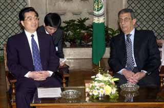 meets Chinese President Hu Jintao at the League headquarters in Cairo
