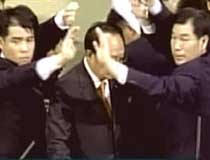 The unprecedented vote prompted dramatic scenes on the floor of the assembly with security guards dragging pro-Roh parliamentarians from the chamber while other supporters shouted and wept.