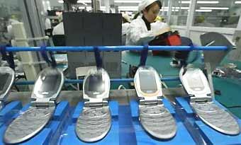 A Chinese worker conducts tests on mobile phones at the Ningbo Bird Co. Ltd production line in the eastern port city Ningbo. China's Bird, the country's top cell phone maker, aims to hike sales by two-thirds to 20 million handsets in 2004, quadrupling exports to $200 million as it attacks overseas markets, a senior executive said. [Reuters]