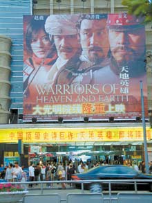huge billboard advertising the Chinese film "Warriors of Heaven and Earth"