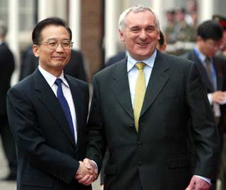"This (Wen's visit) reflects not only the rapid growth of our bilateral relationship in recent years, but the developing comprehensive and strategic partnership between China and EU,'' said Ahern, who is also the president of European Council as well as holding the rotating presidency position of the EU. "Ireland and China have successfully embarked on a long-term relationship to co-foster co-operation in the economic, cultural and social spheres.''